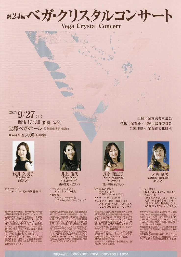 出演:浅井久視子(Pf.)、井上佳代(Rec.)、長宗理恵子(Sop.)、一ノ瀬夏美(Pf.)